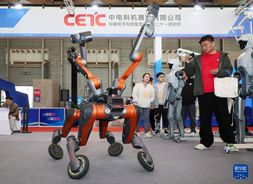 11月25日,我国电子科技集团公司第二十一研究所研发的半人马机器人在展会现场进行演示。